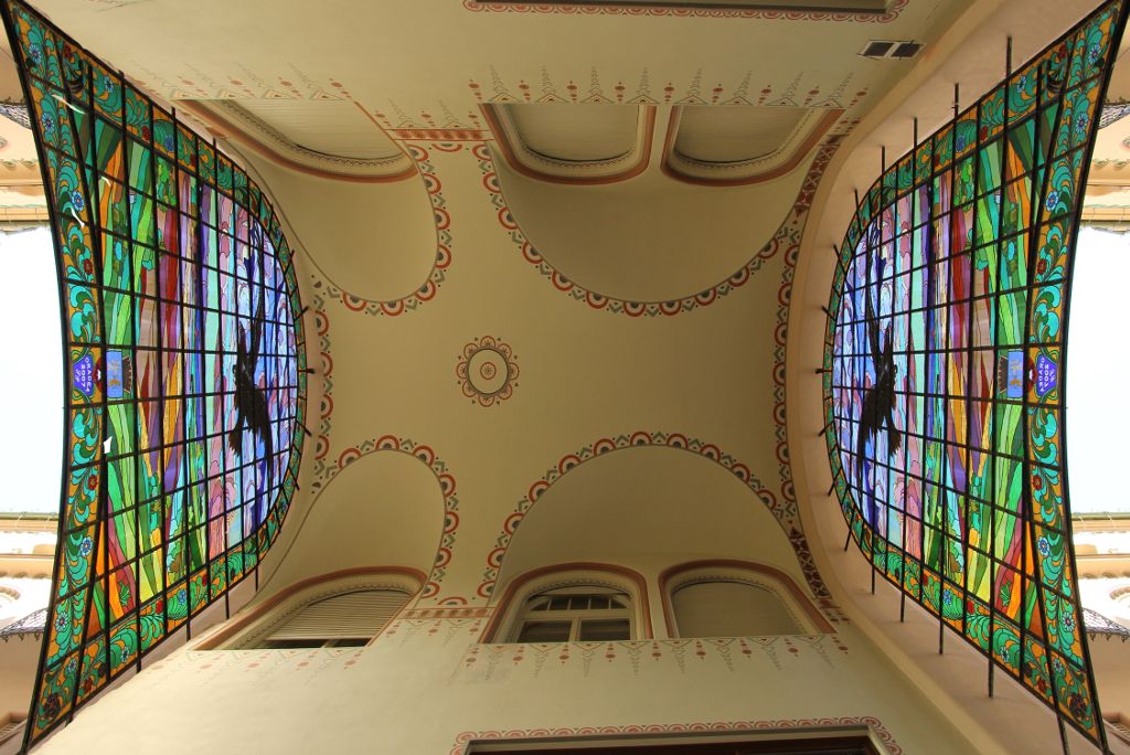 The Art Nouveau buildings not only reflect the European architectural style of this period, but are the mirrors of the owner’s culture; such as the Ullmann Palace on the Nagyvásár (Piața 1 Decembrie) street, no. 9, which bears clear signs of the Jewish religion and culture: on the façade under the second floor window, it is decorated with Nubian lions guarding the Menorah (fabricated in the Zsolnay-factory in Pécs). Izidor Ullmann, father of the house’s owner, Sándor Ullmann, played an important role in the establishment of the Chamber of Commerce and Industry of Oradea.